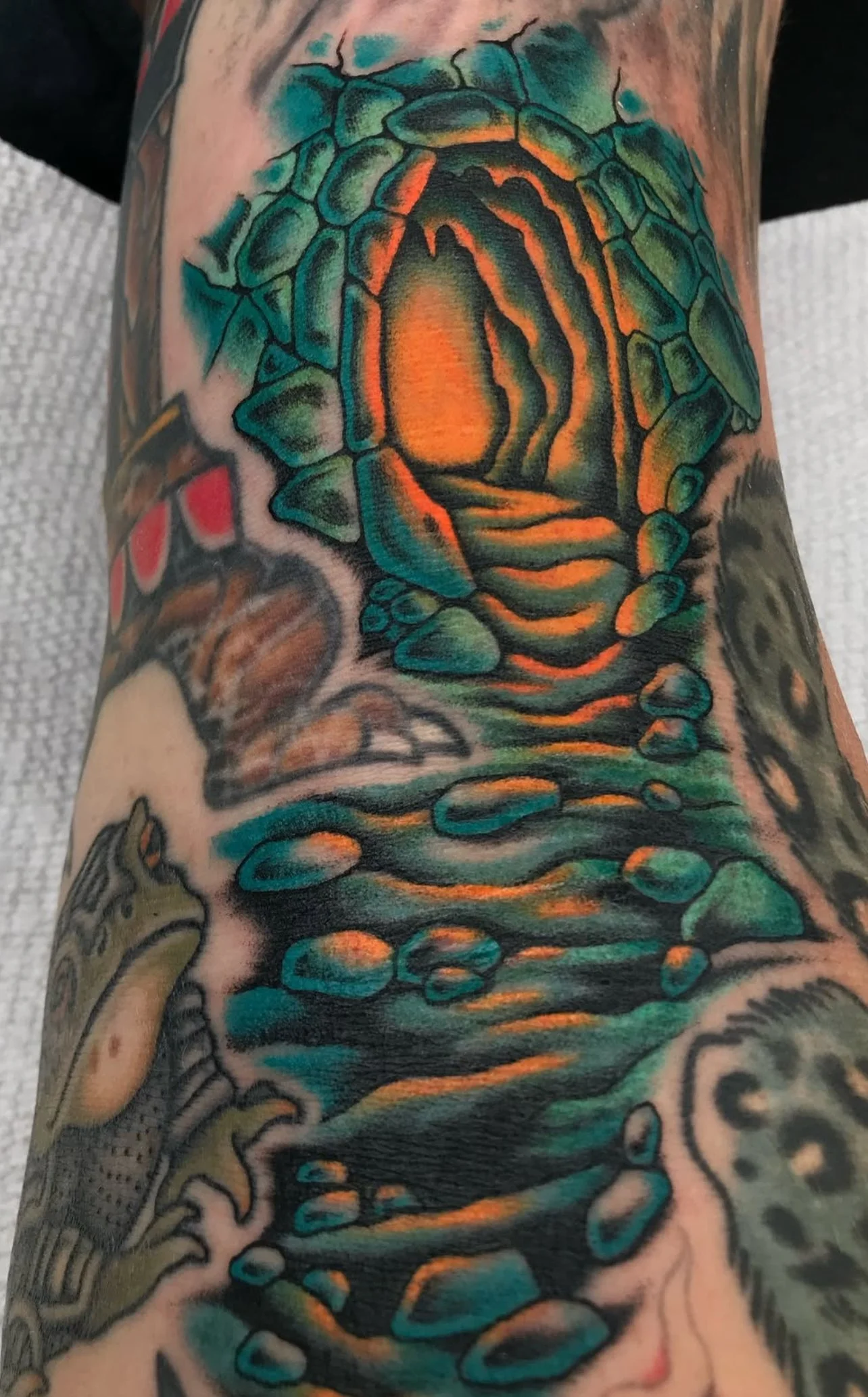 I dabble in many different styles, but I definitely have the most experience with traditional Americana through a modern lens. Lately I have been exploring a wide range of styles including early 19th century traditional, fine line and single needle black and gray, bio mechanical and the occasional animal portraits.
